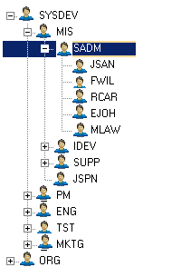 A) Der Benutzer darf auf alle Ressourcen zugreifen. Die Option zum Schutz von Ressourcen ist deaktiviert. | B) Der Benutzer ist dem Ressourcenknoten "MIS" zugewiesen. Dieser Benutzer kann nur auf den Stammknoten "MIS" sowie die entsprechenden untergeordneten Knoten zugreifen. | C) Der Benutzer ist dem Ressourcenknoten "SADM" zugewiesen. Dieser Benutzer kann nur auf den Stammknoten "SADM" sowie die entsprechenden untergeordneten Knoten zugreifen. |