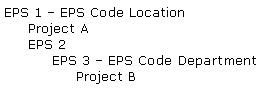 You may want to create EPS-level activity codes at the highest root level of the EPS so that all projects under this EPS level can access these activity codes. The following information explains how the codes are handled if you cut, copy, or paste to move a project with EPS-level activity codes to a different EPS level, based on the following EPS example.